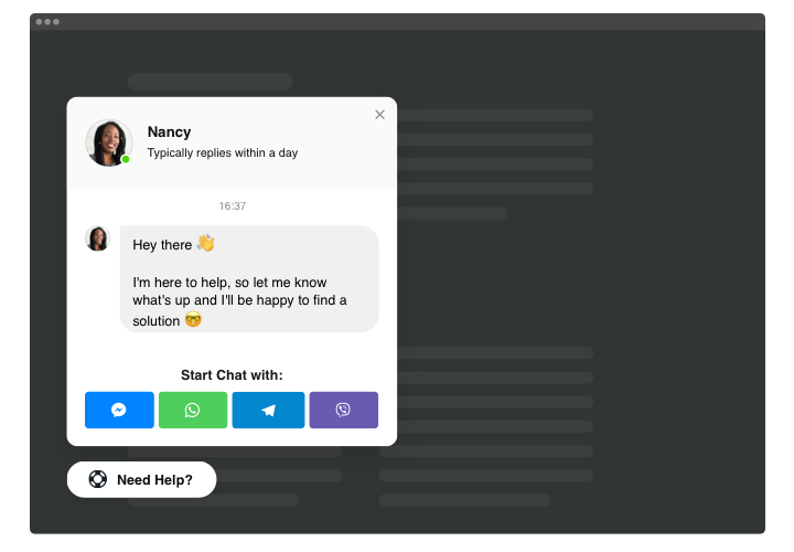 No coding, no complex setup – just a few clicks and your customers get the option to “Chat with us” the way they like best. It’s like putting a friendly assistant in the corner of every page.