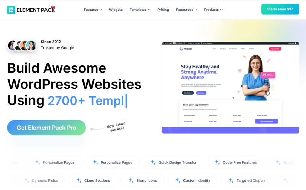 Element Pack Pro is a comprehensive Elementor add-on with 300+ widgets and extensions, including dedicated calendar widgets for event-based websites. Instead of being a standalone calendar plugin, it provides flexible calendar display solutions within a larger design toolkit, making it ideal for users who want advanced layout control alongside event management functionality.