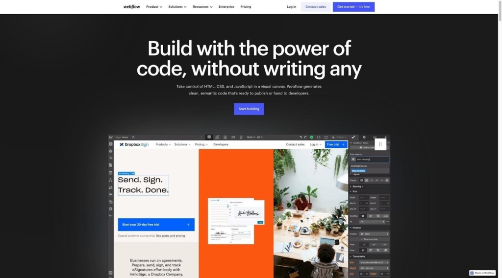 For example, use Webflow to design a portfolio site with dynamic galleries, a blog integrated with a CMS, or an interactive e-commerce store with custom animations. It’s a great tool for anyone who wants a professional, custom look without hiring a developer.