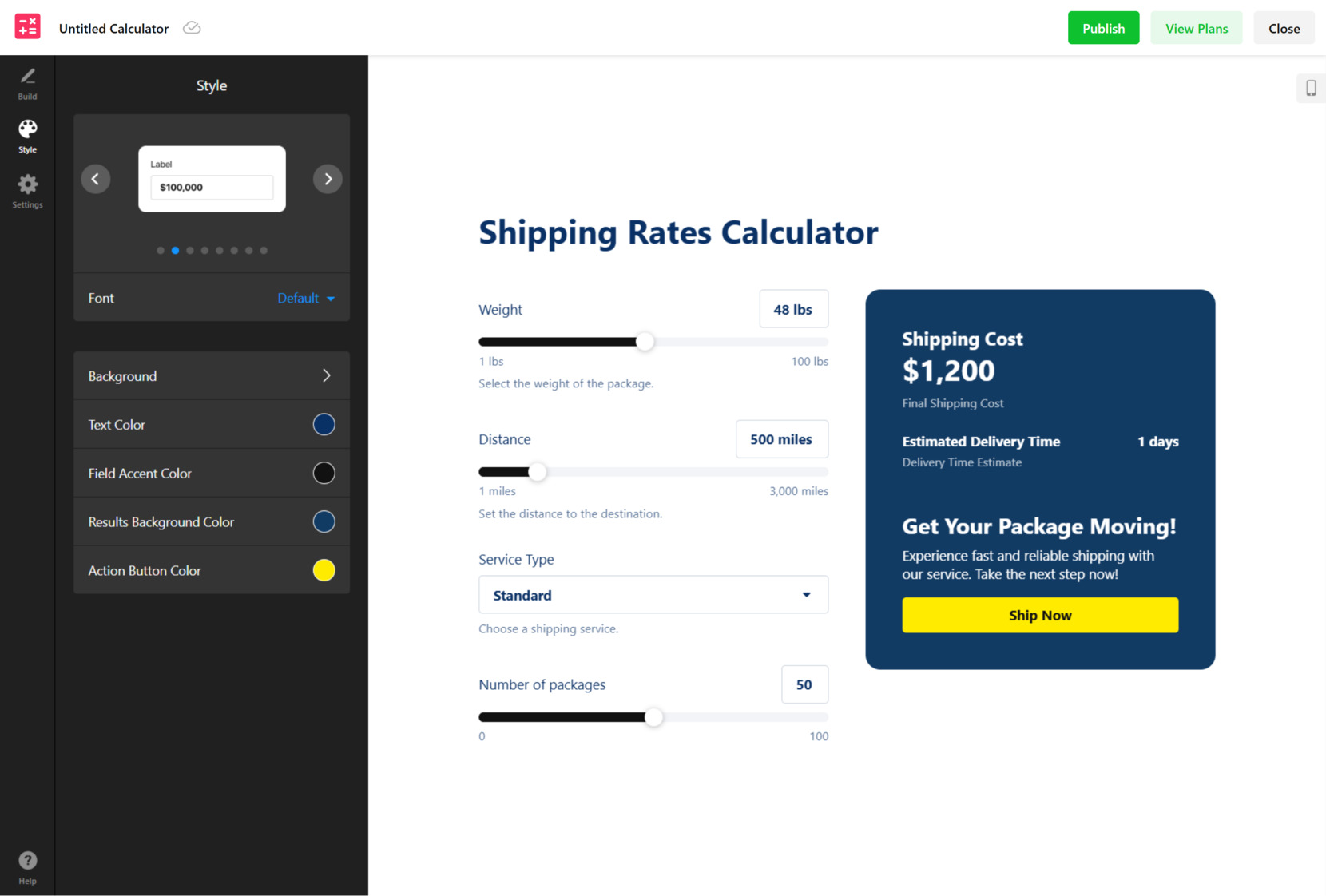 This setup gives you a live, branded shipping calculator tailored to your pricing needs. Revisit the editor anytime to update logic, modify visuals, or test variations.