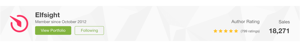 Elfsight team is one of most trusted on CodeCanyon, having almost 800 ratings and scored 4,90 of 5.