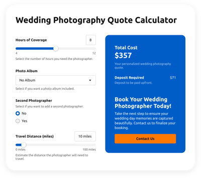 Streamline complex mathematical functions, enable users to make informed choices, and enhance their browsing experience on your WordPress website by leveraging the coding-free Cost Calculator templates from Elfsight. Configure the Calculator widget parameters and add business-specific formulas, then swiftly generate the embed piece of code to get it running. Boost the feature with precise and efficient computations, ensuring an exceptional performance for your visitors!