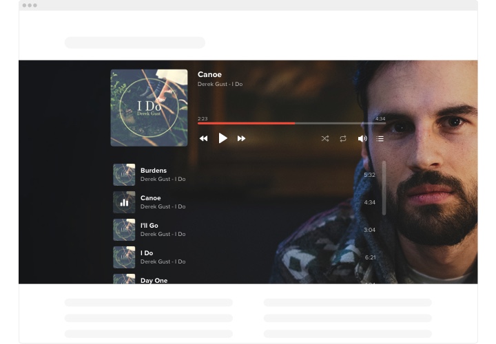 Elfsight Audio Player ist ein einfaches Plugin für WooCommerce, mit dem Sie Audiotitel direkt auf Ihrer Website wiedergeben können. Das Widget ist äußerst veränderbar: Sie können seine Position ändern, es an einer beliebigen Stelle auf der Seite platzieren, seine Größe ändern, den Hintergrund und alle anderen Teile neu einfärben, um es mit dem Stil Ihrer Website zu vermischen, ein dunkles Design verwenden, Bilder anzeigen und vier weitere anzeigen oder ausblenden Player-Elemente wie Fortschrittsbalken, Titel und andere. Fügen Sie so viele Titel hinzu, wie Sie möchten, um Ihr Publikum zu unterhalten, schalten Sie die automatische Wiedergabe ein und zögern Sie nicht – Ihre Benutzer werden Ihre Webseite nicht sofort verlassen!