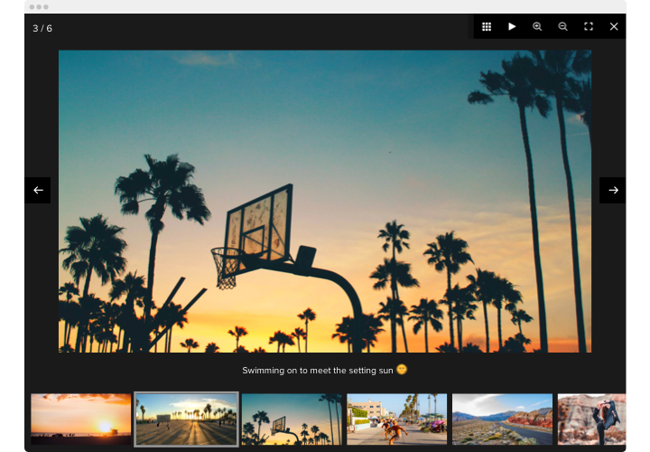 Elfsight stellt eine Lösung vor, mit der Sie selbst ein Fotogalerie-Plugin erstellen können. Sehen Sie, wie unkompliziert es ist So geht es: Gehen Sie zur Live-Demo, um einen Fotogalerie-Bereich einzurichten, den Sie auf der Webnode-Webseite sehen möchten. Wählen Sie eine unserer vorgefertigten Vorlagen aus und ändern Sie die Fotogalerie-Einstellungen sowie das Layout und die Farbschemata einschließlich Ihrer Inhalte, ohne Programmierkenntnisse. Speichern Sie die Fotogalerie und erhalten Sie einen Installationscode, den Sie mit einem kostenlosen Plan einfach in jede Webnode-Webseite einfügen können. Mit unserem unkomplizierten Editor kann jeder Webbenutzer einen Fotogalerie-Bereich erstellen und ihn einfach in seine Webnode-Website einbetten. Sie sollten kein kostenpflichtiges Abonnement abschließen oder Ihre Kartendaten angeben, um an dem Dienst teilzunehmen. Sollten bei irgendeinem Schritt Probleme auftreten, wenden Sie sich bitte an unseren technischen Kundensupport.