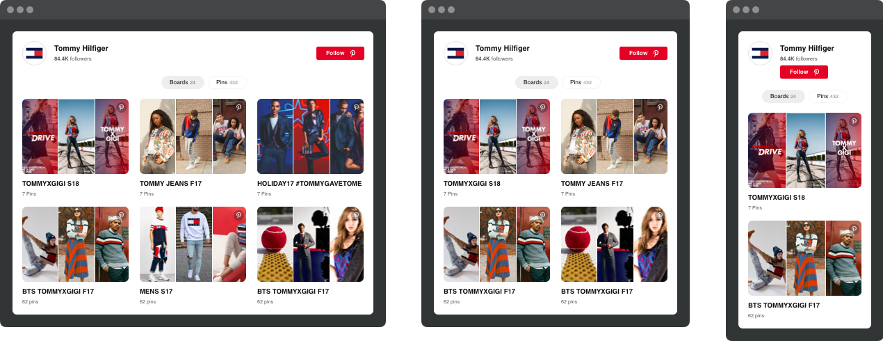 Das Elfsight Pinterest Feed-Widget kann einfach in eine Galerie in voller Größe, ein Seiten-Widget mittlerer Größe, umgewandelt werden und alle erforderlichen Proportionen erhalten. Die Breite und Höhe Ihres Feeds sind flexibel und Sie können sie selbst in Pixel oder Prozent festlegen. Unabhängig von der gewählten Größe reagiert es jedoch auf alle Geräte, um Ihren Benutzern die bestmögliche Benutzererfahrung zu bieten.