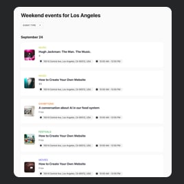 Yes, of course, you can go all out with the customization process to define the passion and values you’ve taken in your business—from picking a layout, event card styles, and a number of showcased events to the color of buttons and backdrop.