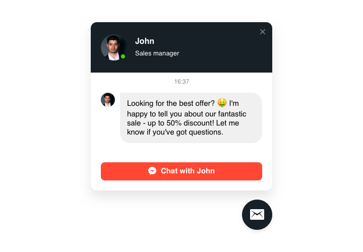 Facebook Chat Box developed by Elfsight is the handiest for your website people to send a message to you and hear answers to their questions and requests. Now you are available right now for visitors in one of the most favorite messenger at all times. Place Live Chat on your web page and it can appear on the most important pages or for particular categories of clientele, pick start-chat triggers, demonstrate your own welcome message, align icons and much more. With the help of Facebook messenger working on website, you will be connected to your customers anytime and regardless of where you are.