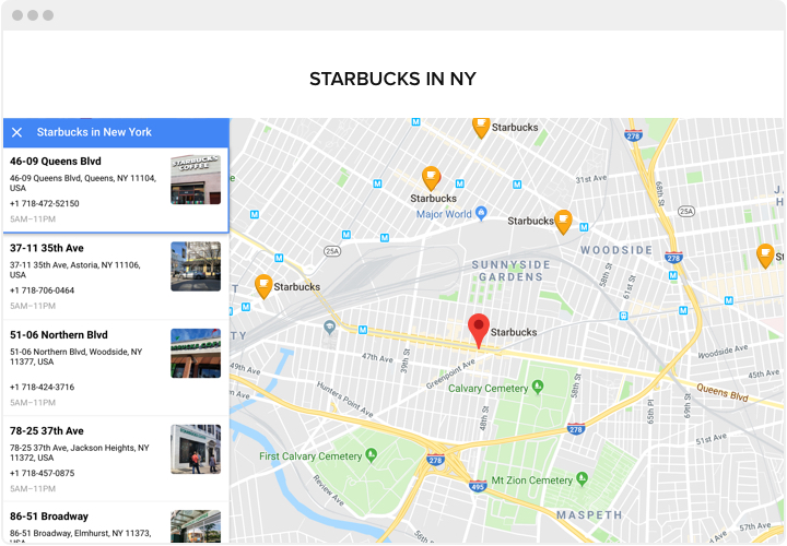 - Multiple locations: Show one branch or dozens – perfect for businesses with more than one address.