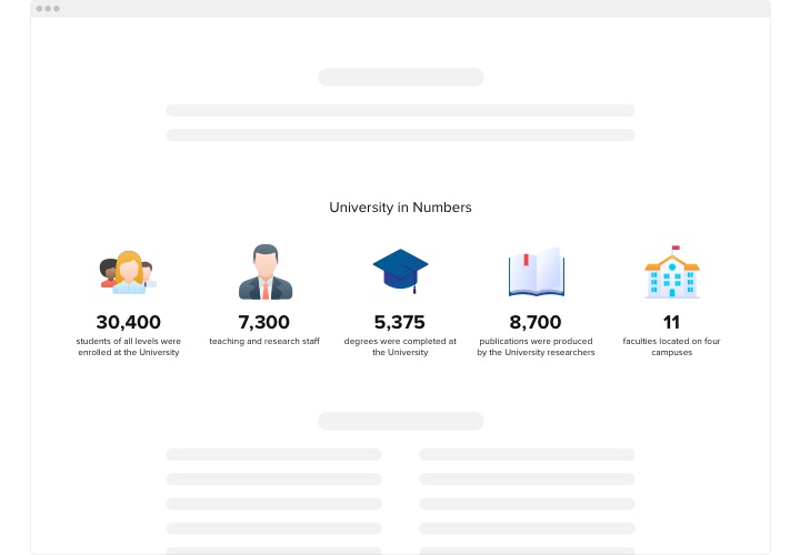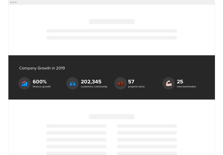 The Number Counter is a user-friendly plugin for Squarespace with a wide array of options. It is a great tool for showing off your splendid business indices, the amount of works you’ve done so far and much more. The widget is remarkably flexible. You are free to construct an unlimited amount of counters, compose them in columns, select icons from our collection or upload your custom-tailored, make them variegated or solid-colored, adjoin titles to clear up the numbers you’re displaying, recolor any element, choose the background image, and that’s not all. Just start constructing your plugin now and watch your crucial business stats grow!
