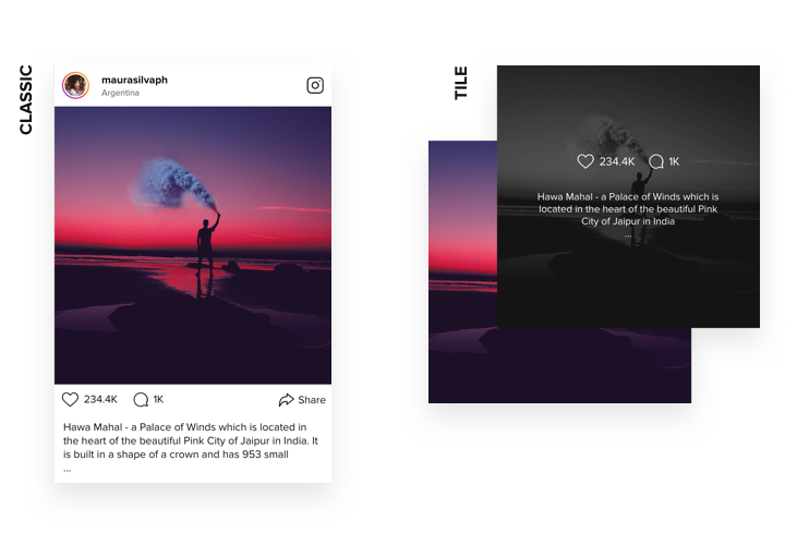 - 2 szablony postów: klasyczny i kafelkowy