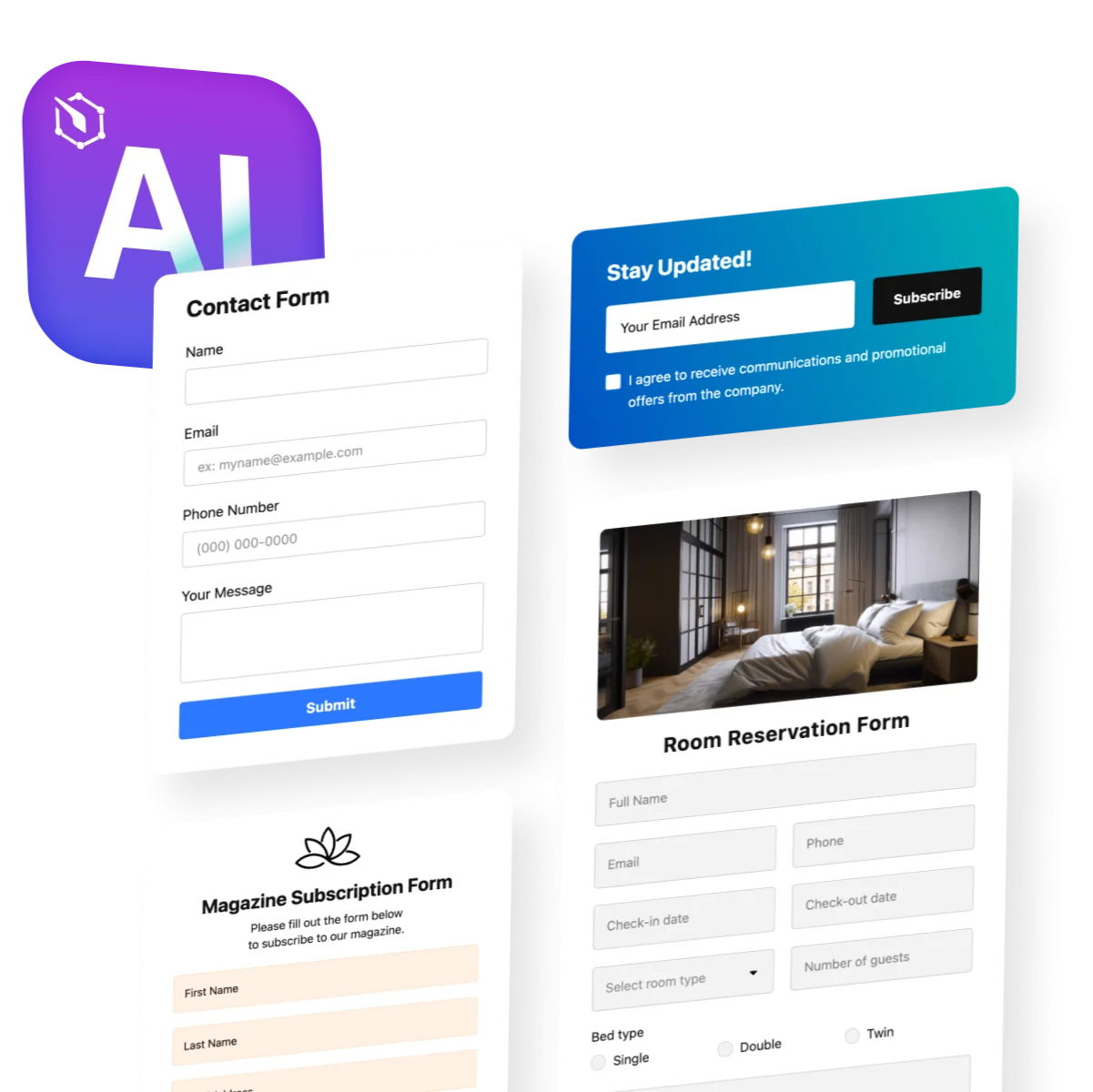 Projetar um formulário para seu site não precisa ser uma tarefa assustadora. O Gerador de Formulários da Elfsight permite que você crie e integre perfeitamente formulários personalizados adaptados às suas necessidades específicas, independentemente do seu background técnico.