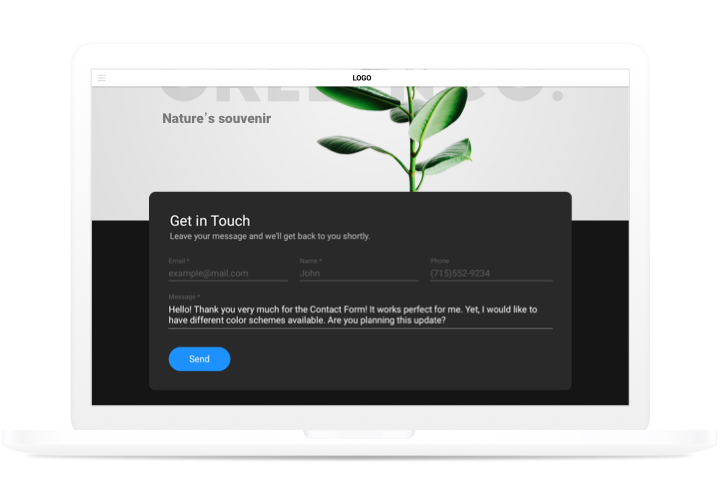 Будьте на связи с клиентами, мотивируя их отправлять сообщения с помощью контактной формы в любое время. Минимальное количество полей увеличивает конверсию. - Защита от спама.