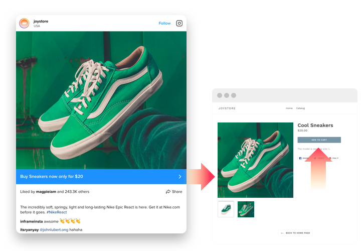Привлекайте посетителей и вызывайте максимум впечатлений пользователей, используя картинки из Инстаграм, чтобы иметь сильное взаимодействие.