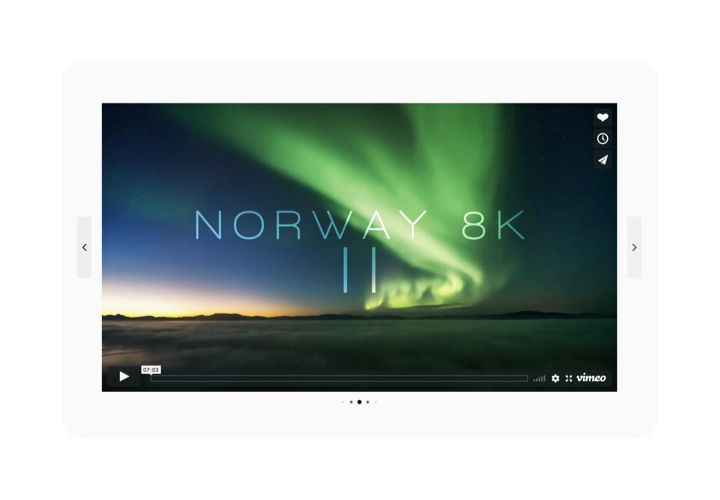 - Multiple content sources: Display one video, a playlist, a channel, or even several albums – all straight from your Vimeo account.
