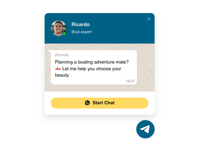 WhatsApp Live Chat can be inserted to all pages of your website, or only to certain ones. Another option is to restrict it on particular pages where you don’t want the widget.